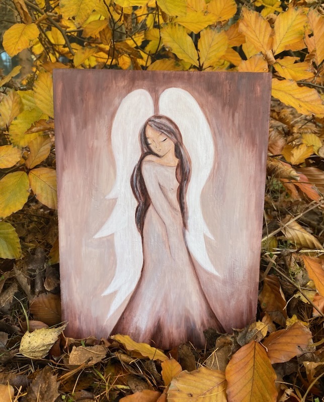 Ręcznie malowany obraz – Anioł na drewnie (30 × 20 cm)
