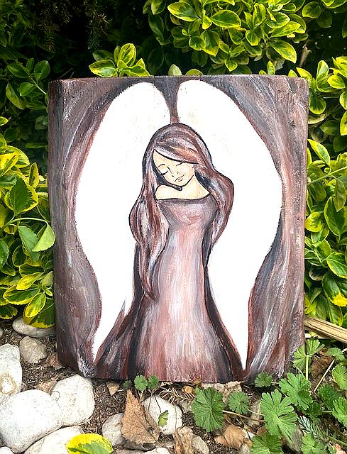 Obraz Anioł ręcznie malowany na drewnie 29×27 cm | dekoracja | dedykacja gratis