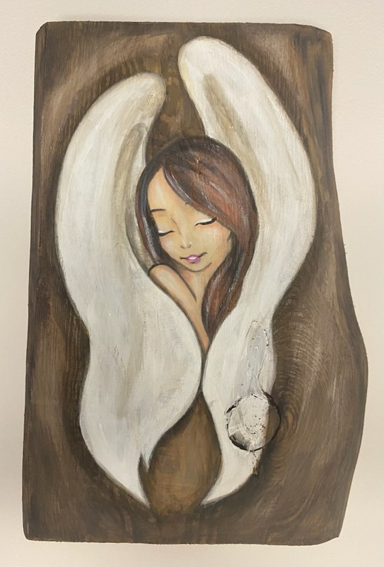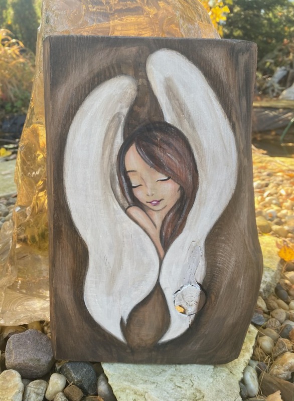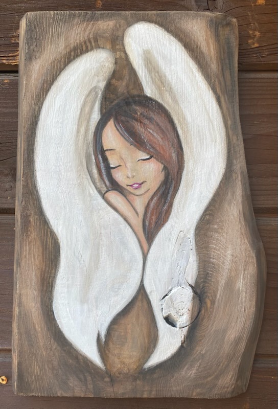 Strona główna » Sklep » Anioły ręcznie malowane » Ręcznie malowany obraz anioła na drewnie 29×20 cm – akryl, personalizacja